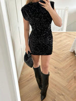 Robe de soirée noire à sequins – Élégance et éclat glamour